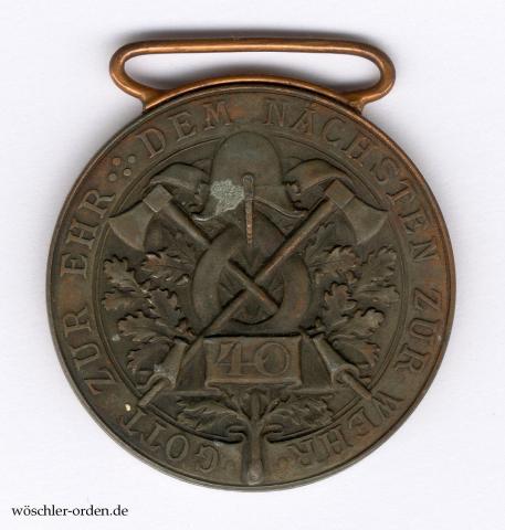 Großherzogtum und Freistaat Baden, Ehrenzeichen für 40-jährige Dienstleistung bei der Freiwilligen Feuerwehr, verliehen 1899 bis 1936, bzw. bis 1918 als „Ehrenzeichen für Mitglieder der Freiwilligen Feuerwehren für 40 Dienstjahre“.