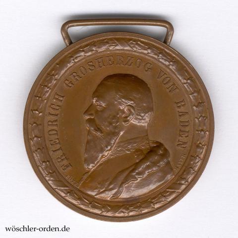 Exemplar der ersten, bis ungefähr 1908 verliehenen Ausgabe, mit der Schreibweise „GROSHERZOG“. Bronze geprägt und patiniert, an eingestiftetem Tragebügel.
