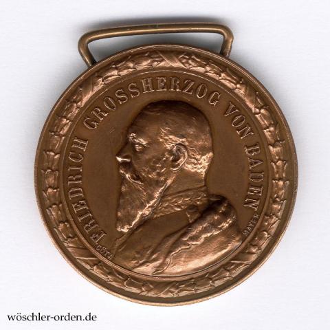 Exemplar der zweiten, wohl 1908 bis 1916 verliehenen Ausgabe, mit der Schreibweise „GROSSHERZOG“. Bronze geprägt und patiniert, an eingestiftetem Tragebügel.