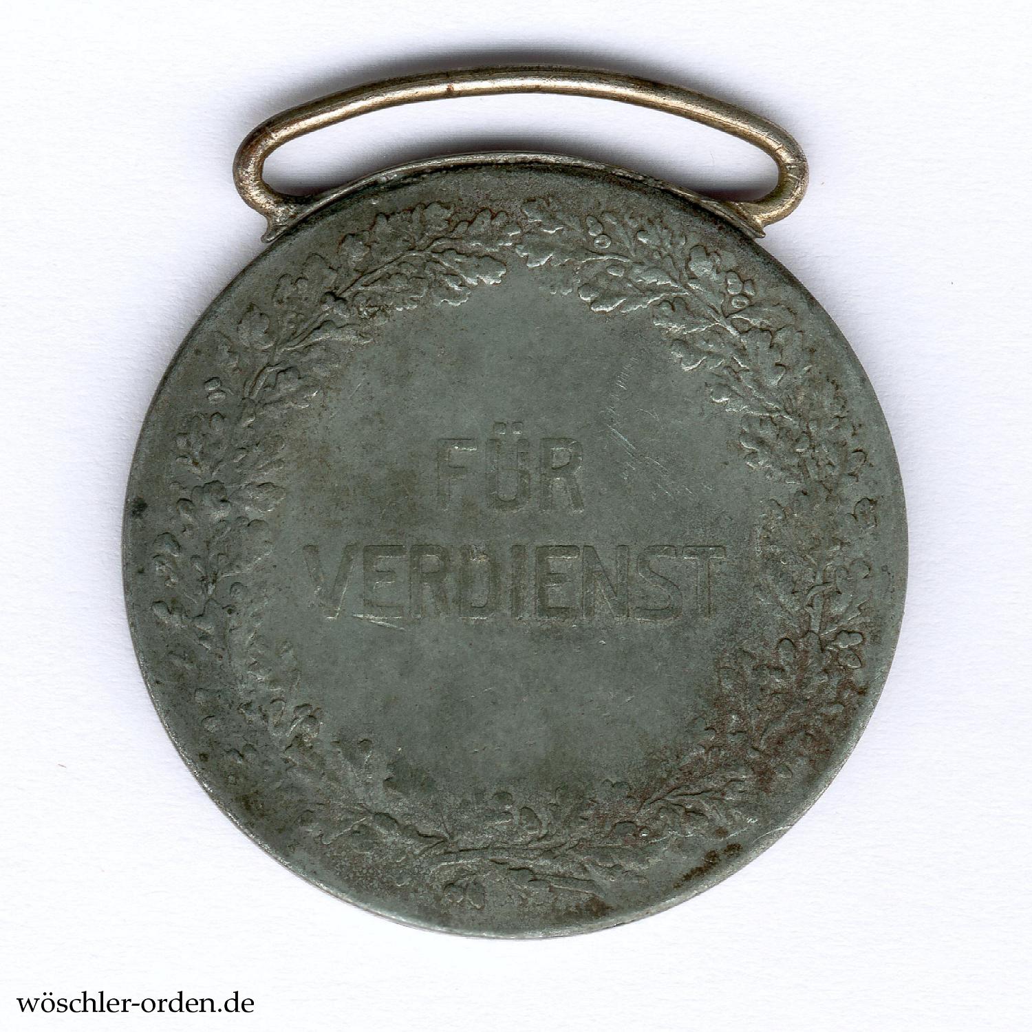 Exemplar des von 1908 bis 1918 verliehenen neunten (bei Volle: dreizehnten) Modells mit dem Portrait Großherzog Friedrich II., in der zweiten, ab etwa Juli 1916 in B. H. Mayers Hofkunstprägeanstalt, Pforzheim, geprägten Ausgabe. Kriegsmetall geprägt und versilbert, an angelötetem Tragebügel, mit der für die „unechten“ Exemplare obligatorischen Randpunze. Das Portrait der Vorderseite schuf der Medailleur und Ziseleur Prof. Rudolf Mayer. Unter Friedrich II. sind etwa 132.350 Verleihungen der Silbernen Verdienstmedaillen nachweisbar, davon etwa 129.300 am Bande der Militärischen Karl-Friedrich-Verdienstmedaille.