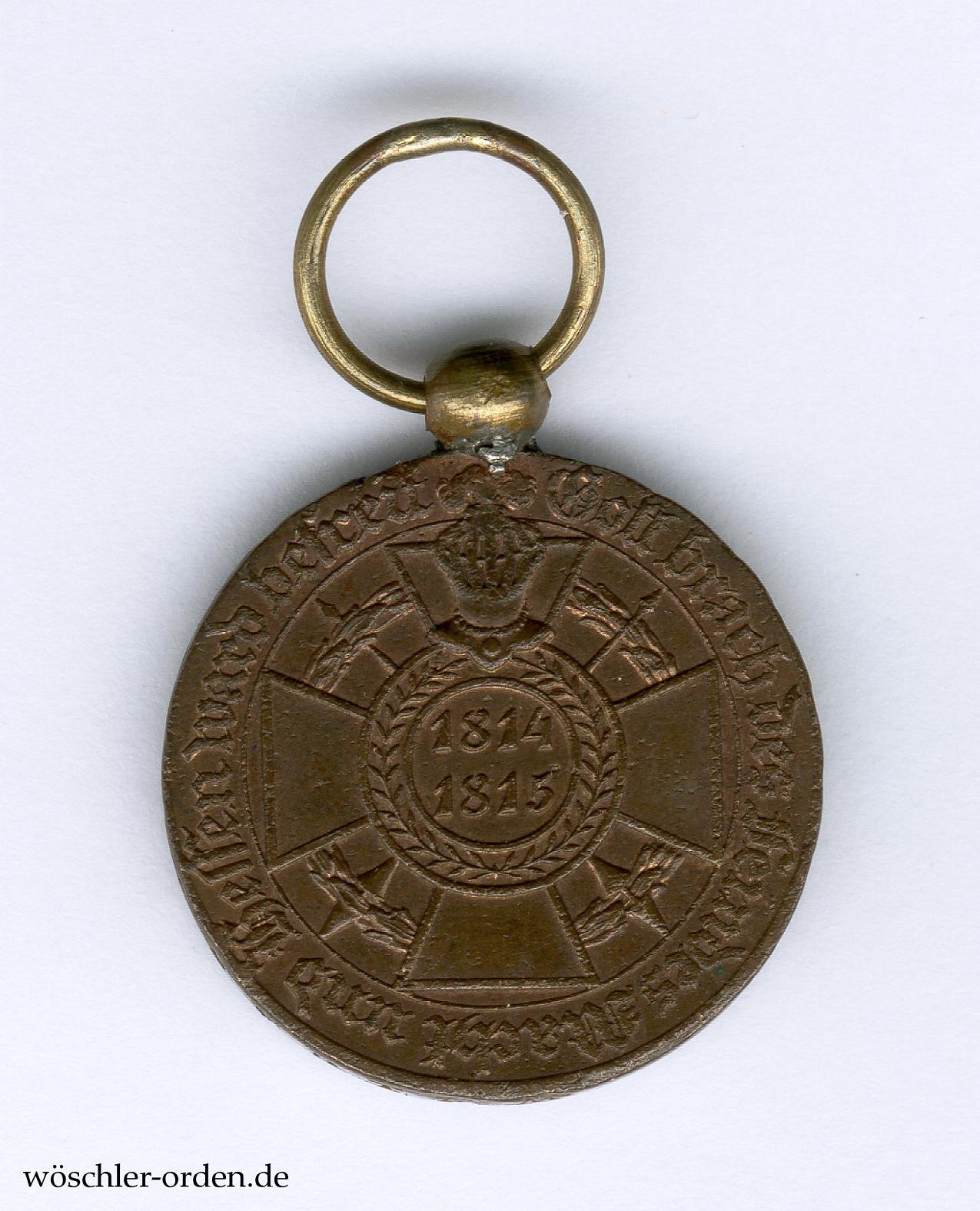 Kurfürstentum Hessen, Kriegsdenkmünze für 1814/1815, verliehen 1821 bis 1823.