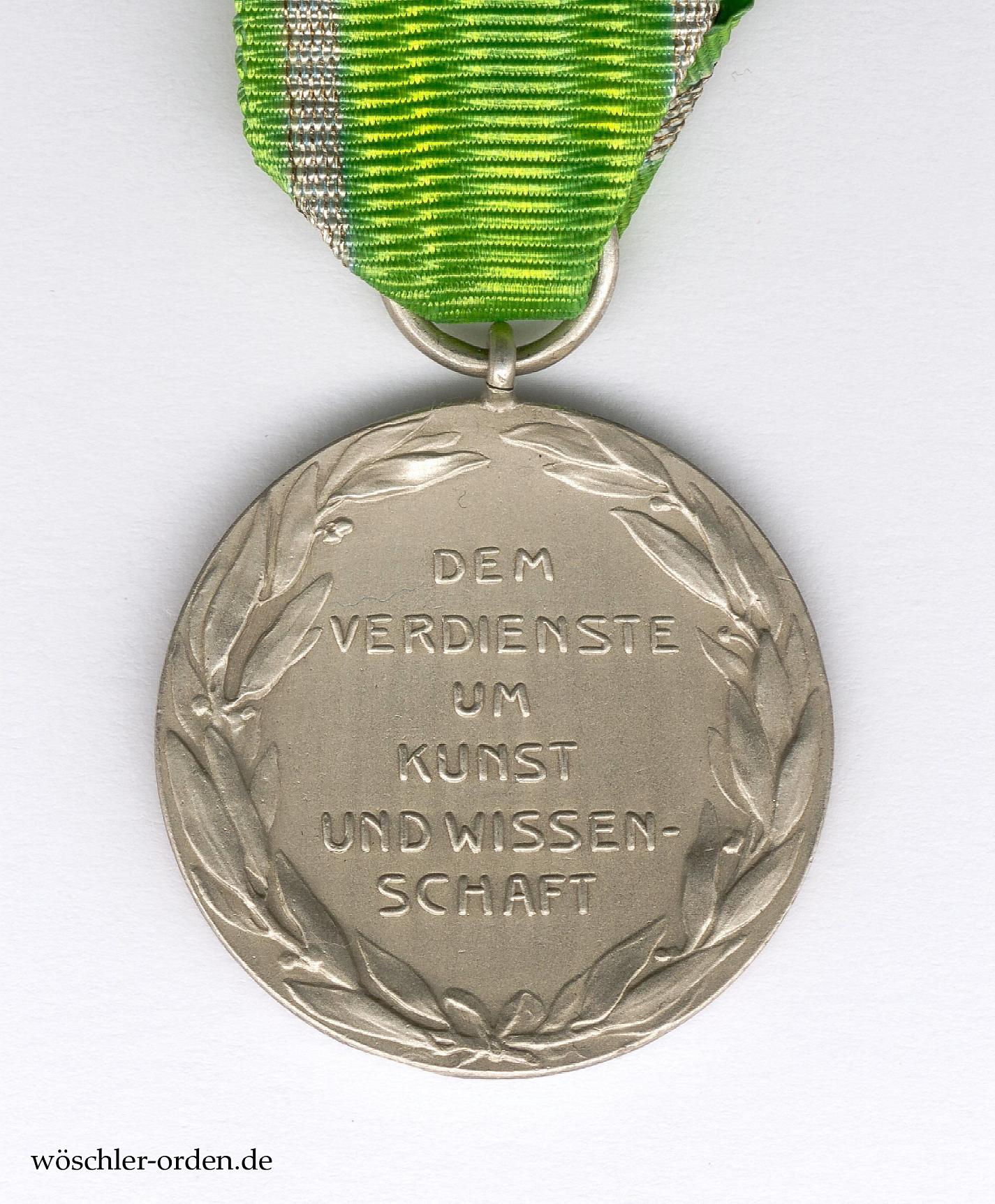 Die Medaille für Kunst und Wissenschaft wurde von Herzog Ernst I. am 30. Dezember 1874 in vier Stufen, Gold und Silber, jeweils mit oder ohne Krone, gestiftet. Ab 1891 kam eine neue Prägung mit veränderter Zeichnung zur Ausgabe. Nach dem Regierungsantritt Herzog Ernst II. wurde die Medaille für Kunst und Wissenschaft beibehalten, erhielt jedoch eine neue Gestalt. Für die Silberne Medaille sind unter der Regierung Herzog Ernst II. lediglich drei (!) Verleihungen nachweisbar, es wurde jedoch sicherlich eine merklich größere Zahl gefertigt. Mutmaßlich stammt auch dieses Exemplar aus dem unverliehen gebliebenen und in Umlauf gekommenen „Restbestand“ des Altenburger Hofjuweliers Ernst Eberhardt.