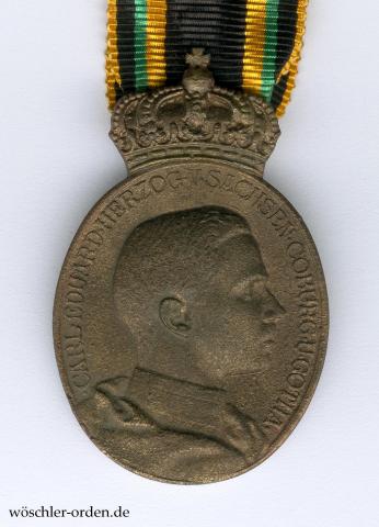 Das Ehrenzeichen für Heimatverdienst wurde durch Herzog Carl Eduard am 19. Juli 1918 „für Personen ohne Unterschied des Geschlechtes, Ranges und Standes im Herzogtum, die während des Krieges mittelbar oder unmittelbar im Interesse der Kriegsführung und in der Förderung gemeinnütziger Bestrebungen Hervorragendes geleistet haben“ gestiftet. Bei Lauer in Nürnberg sollen 5000 Medaillen bestellt worden sein, von denen bis Kriegsende jedoch nur ungefähr 3000 Exemplare angefertigt wurden. Nimmergut gibt 1226 Verleihungen, davon 809 in Sachsen-Gotha und 417 in Sachsen-Coburg, sowie 5 Nachverleihungen am 21. Juli 1919 an.