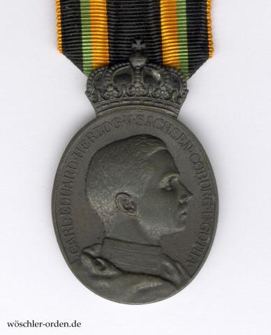 Das Ehrenzeichen für Heimatverdienst wurde durch Herzog Carl Eduard am 19. Juli 1918 „für Personen ohne Unterschied des Geschlechtes, Ranges und Standes im Herzogtum, die während des Krieges mittelbar oder unmittelbar im Interesse der Kriegsführung und in der Förderung gemeinnütziger Bestrebungen Hervorragendes geleistet haben“ gestiftet. Bei Lauer in Nürnberg sollen 5000 Medaillen bestellt worden sein, von denen bis Kriegsende jedoch nur ungefähr 3000 Exemplare angefertigt wurden. Nimmergut gibt 1226 Verleihungen, davon 809 in Sachsen-Gotha und 417 in Sachsen-Coburg, sowie 5 Nachverleihungen am 21. Juli 1919 an.