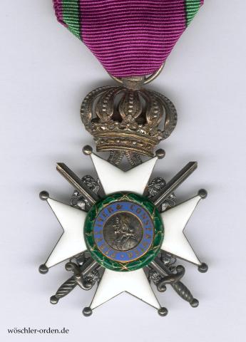 Hochwertige Fertigung wohl noch aus der ersten Hälfte des Weltkrieges. Silber, mehrteilig gearbeitet und teils opak, teils transluzid emailliert, die Medaillons in Gold und Emaille. Die Schwerter in der Ausführung mit geschwungenen, sog. „französischen“ Parierstangen, die häufig mit Verleihungen des Herzogtums Sachsen-Altenburg in Verbindung gebracht werden, aber offenbar nicht auf diese beschränkt sind.