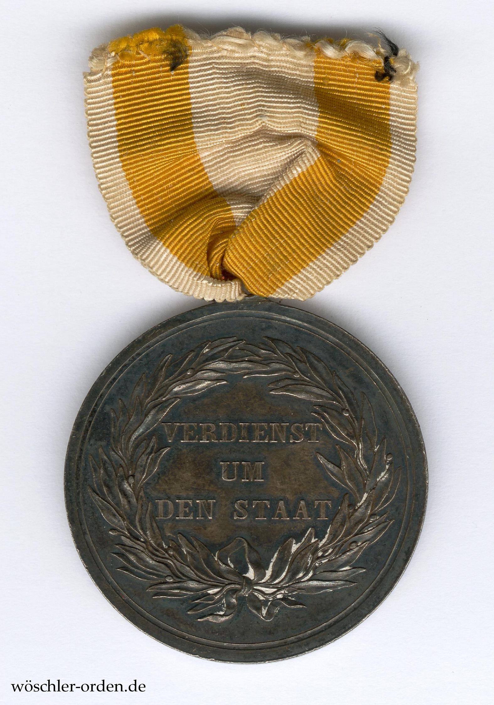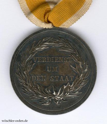Literatur: Tewes, Lothar und Bannicke, Elke. Preußens Silbermedaillen „VERDIENST UM DEN STAAT“ 1793 bis 1918. Typenkatalog und Variantenchronologie. In: Orden und Ehrenzeichen. Das Magazin für Freunde der Phaleristik. Heft 105 vom Oktober 2016. Vgl. S. 271–279.