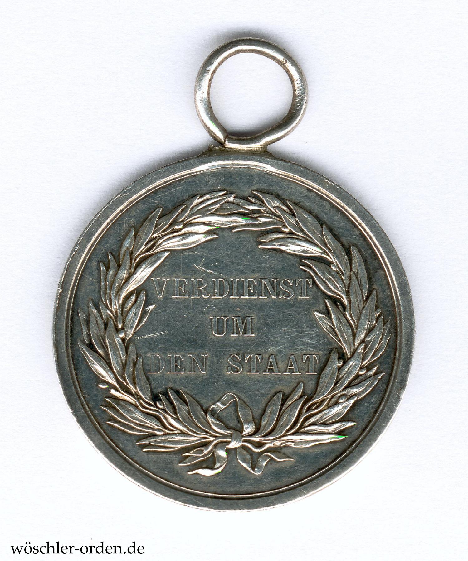 Literatur: Tewes, Lothar und Bannicke, Elke. Preußens Silbermedaillen „VERDIENST UM DEN STAT“ 1793 bis 1918. Typenkatalog und Variantenchronologie. In: Orden und Ehrenzeichen. Das Magazin für Freunde der Phaleristik. Heft 105 vom Oktober 2016. Vgl. S. 271–279.