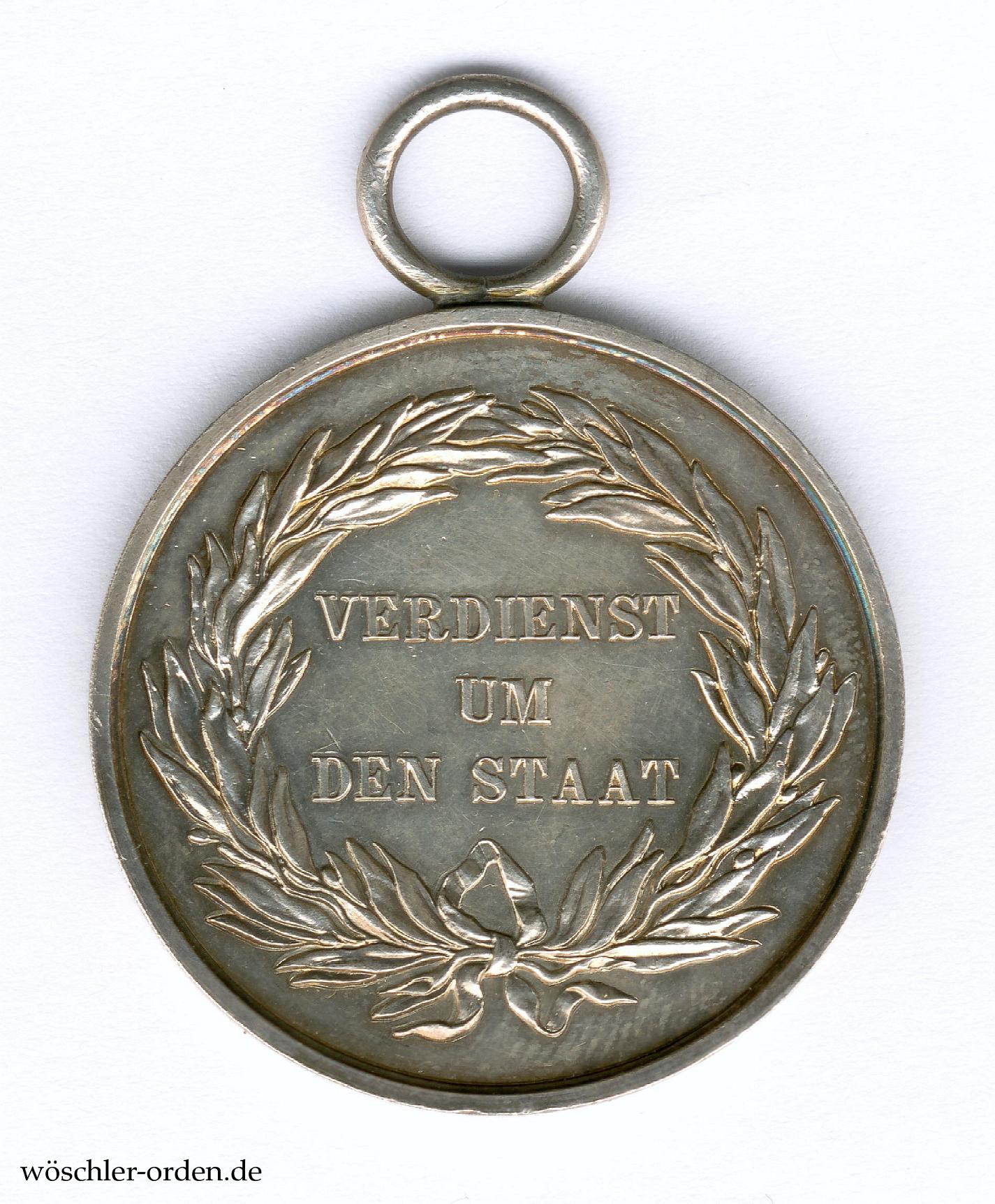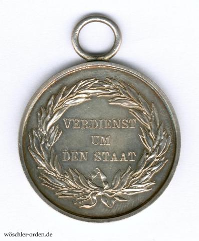 Literatur: Tewes, Lothar und Bannicke, Elke. Preußens Silbermedaillen „VERDIENST UM DEN STAT“ 1793 bis 1918. Typenkatalog und Variantenchronologie. In: Orden und Ehrenzeichen. Das Magazin für Freunde der Phaleristik. Heft 105 vom Oktober 2016. Vgl. S. 271–279.