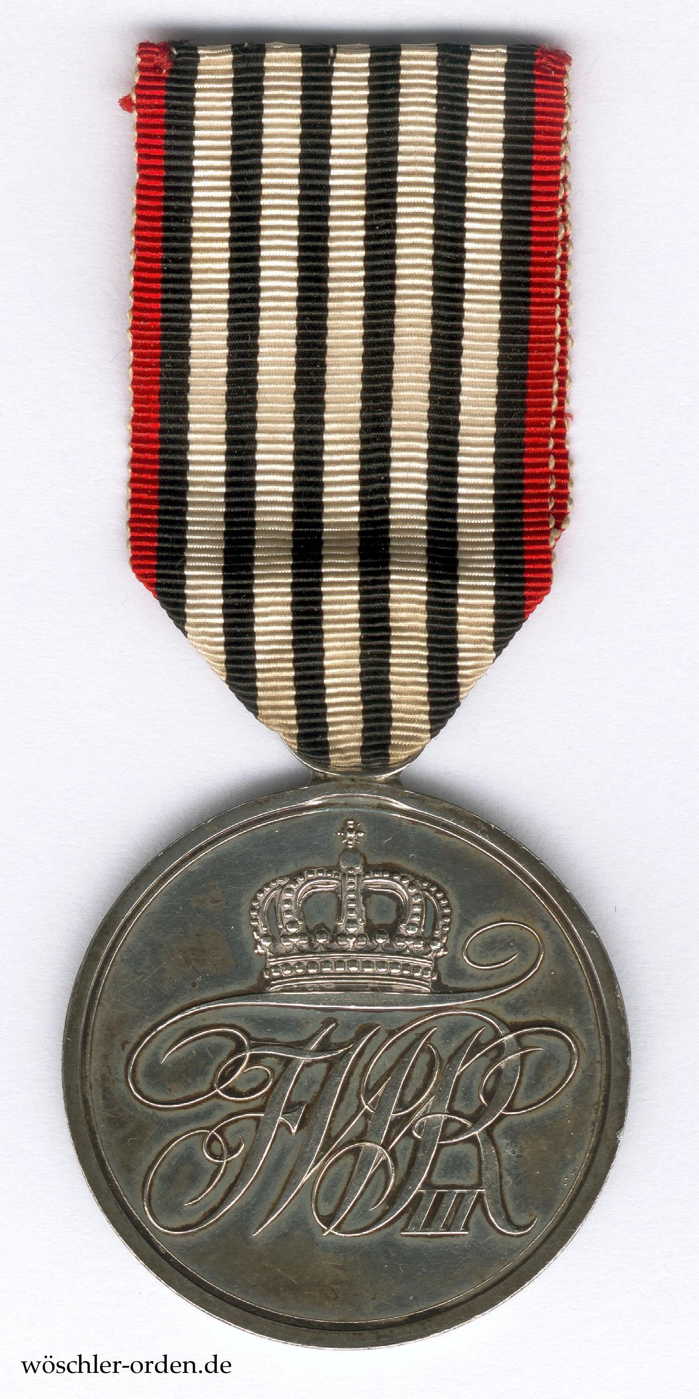Königreich Preußen, Allgemeines Ehrenzeichen am weißen sechsmal schwarzgestreiften Bande mit rothem Vorstoß, dem sog. „Erinnerungsband“, verliehen 1872 bis 1873.
