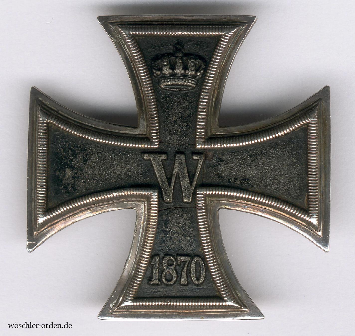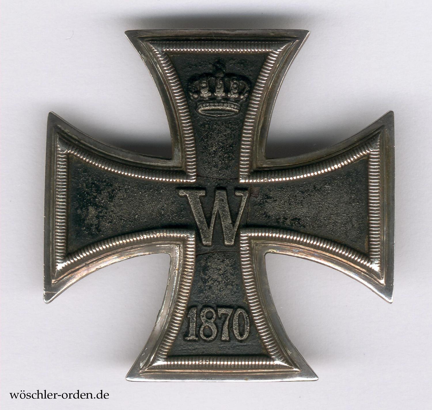 Das Eiserne Kreuz wurde durch König Wilhelm I. wenige Tage nach der Kriegserklärung Frankreichs an Preußen vom 19. Juli 1870 für den Deutsch-Französischen Krieg erneuert, der Erlass später auf den Tag der Kriegserklärung rückdatiert. In der ersten Klasse erfolgten, mit der zweiten Klasse am schwarz-weißen und jener am weiß-schwarzen Band, insgesamt etwa 1300 Verleihungen.