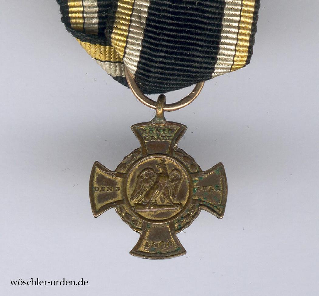 Das Erinnerungskreuz für 1866 wurde durch König Wilhelm I. am 20. September 1866 in drei Ausführungen für Kämpfer, nämlich für die Schlacht bei Königgrätz, für die Mainarmee und für die sonstigen treuen Krieger, sowie in einer Nichtkämpferausführung gestiftet. Die Kreuze für die Kämpfer wurden aus Geschützbronze, das für die Nichtkämpfer hingegen aus gewöhnlicher Bronze gefertigt.