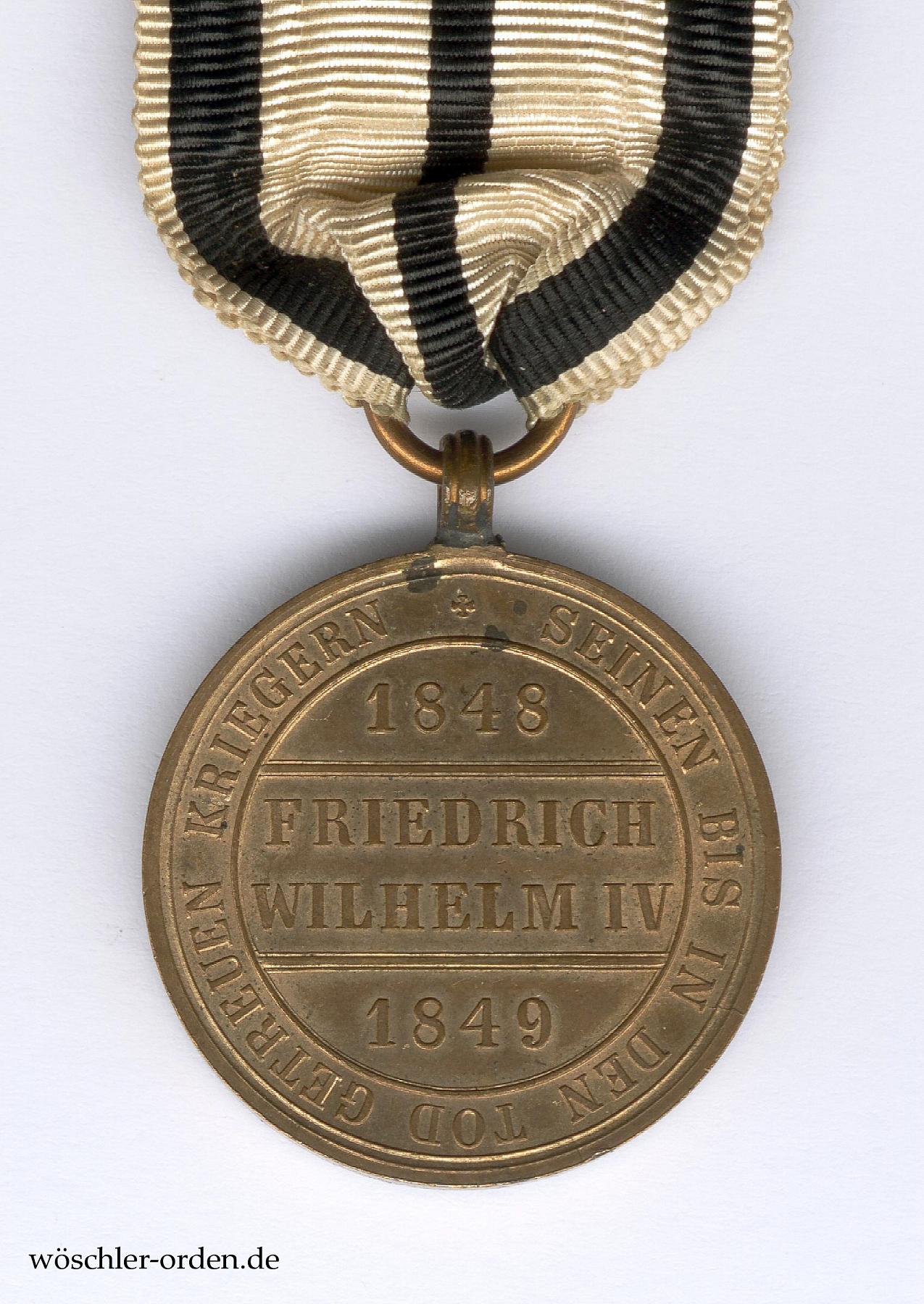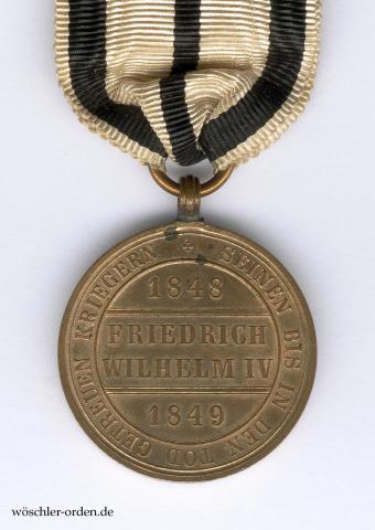 Die Hohenzollernsche Denkmünze 1848/1849 wurde am 23. August 1851 durch König Friedrich Wilhelm IV. als dem Königlichen Hausorden von Hohenzollern angegliederte, nur einmalig zu vergebende Auszeichnung für Offiziere und Soldaten der Armee, welche sich in den während der Jahre 1848 und 1849 vorgefallenen Gefechten gegen die Aufständischen bewährt hatten, in zwei Ausführungen, für Kämpfer und für Nichtkämpfer gestiftet, wobei beide Medaillen aus Bronze geprägt und auch am selben Bande zu tragen waren. Der Umstand, dass eine Kriegsdenkmünze einem allgemeinen Haus- oder Verdienstorden angegliedert wurde, ist hierbei ein zumindest für Preußen einmaliger Vorgang.