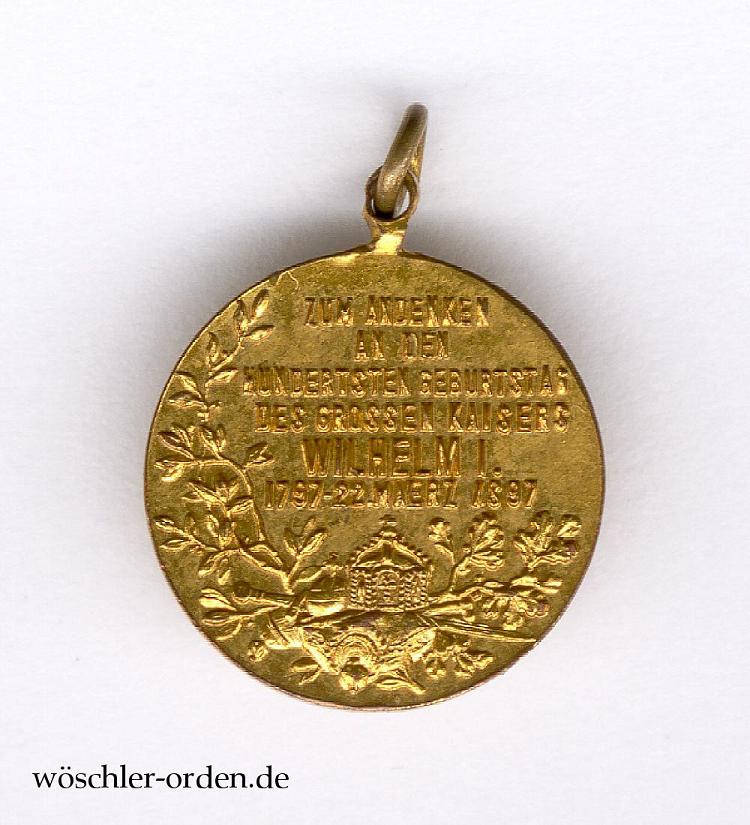 Die Erinnerungsmedaille wurde am 22. März 1897 von König Wilhelm II. zum Andenken an den 100. Geburtstag seines Großvaters, Wilhelm I., für sämtliche Offiziere, Militärbeamte, Unteroffiziere und Soldaten, welche an diesem Tage der aktiven (preußischen!) Armee oder den Reichstruppen angehörten, sowie für die Veteranen der Kriege von 1864, 1866 und 1870/71 gestiftet. Insgesamt wurden über 1,2 Millionen Medaillen verausgabt. Reduktionen waren recht beliebt, da sie mit den kleineren Kriegsdenkmünzen usw. besser im Gesamtbild der Großen Ordensschnalle korrespondierten. Da sie auf eigene Kosten zu beschaffen waren, sind sie trotzdem nicht allzu häufig.