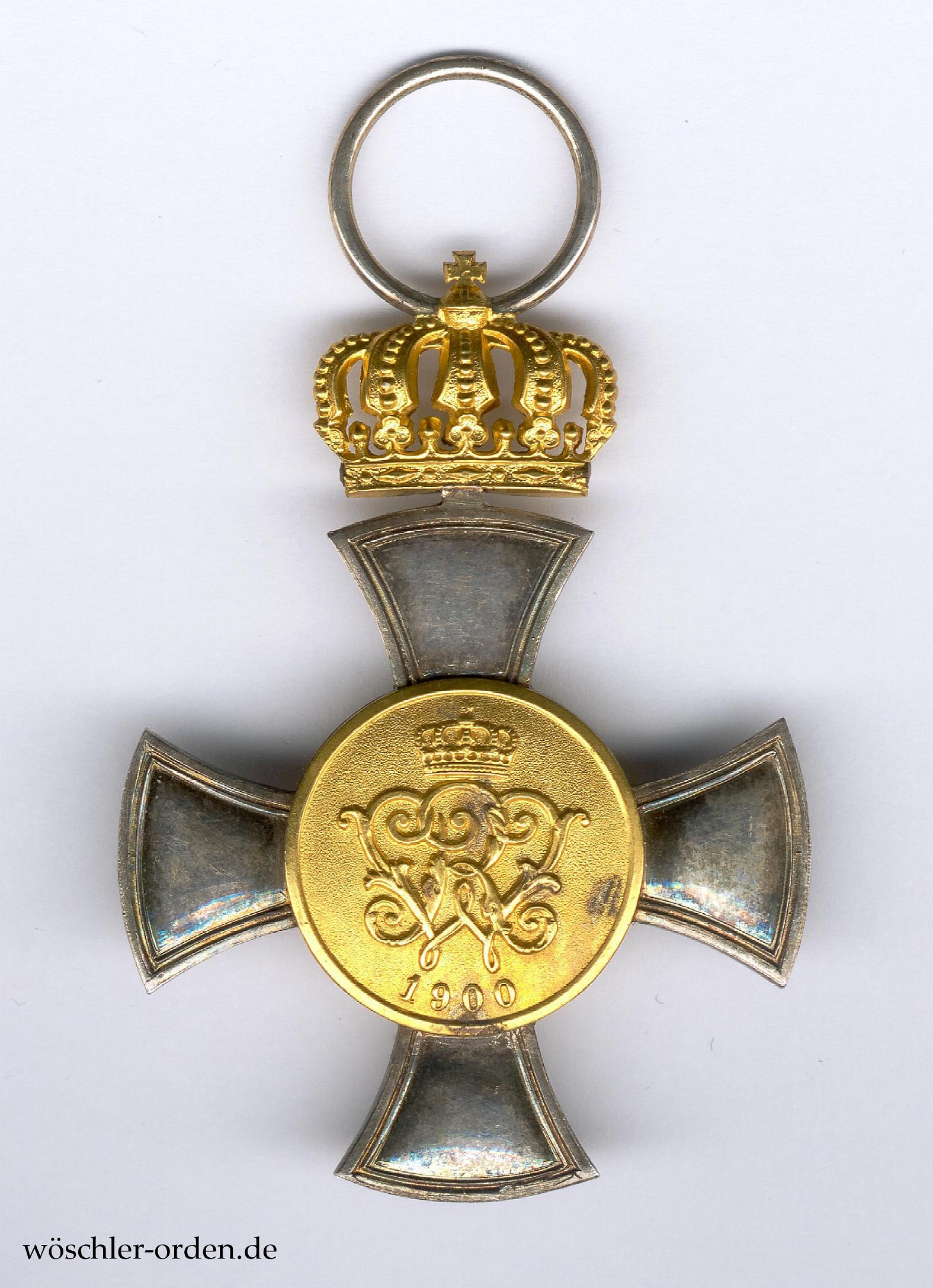 Das Kreuz des Allgemeinen Ehrenzeichens wurde am 27. Januar 1900 durch Wilhelm II. als höhere Stufe des Allgemeinen Ehrenzeichens gestiftet, nachdem zuvor das bereits 1890 gestiftete Allgemeine Ehrenzeichen in Gold – wohl aus Kostengründen – abgeschafft wurde. Verliehen werden konnte es mit den Jubiläumszahlen 50 und 60 sowie mit einer „goldenen Krone“, dies auch kombiniert. In der hier vorliegenden Form erfolgten nach Ludvigsen bis 1913 – mit den üblichen Einschränkungen – insgesamt 160 Verleihungen, hinzu kommen die fehlenden bis 1918.