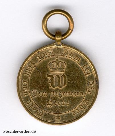 Verleihungsstück aus eroberter französischer Geschützbronze mit entsprechender Randinschrift, an eingeprägter, gerillter Ringöse mit offenem Bandring.