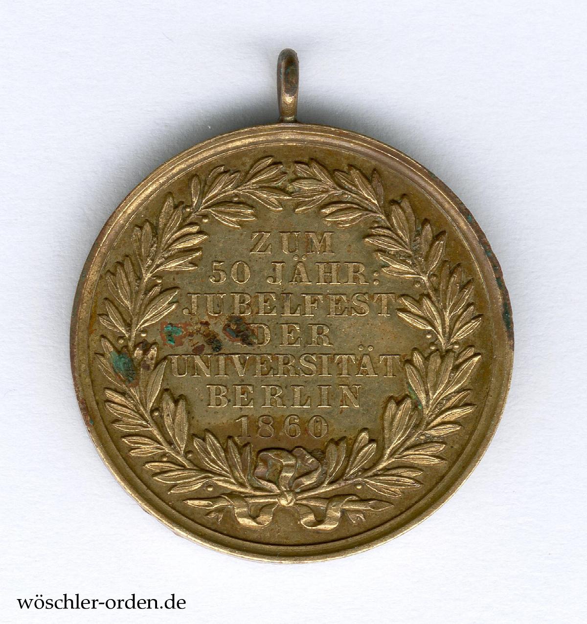 Preußen, tragbare Medaille auf das 50-jährige Jubelfest der Universität Berlin (1860).