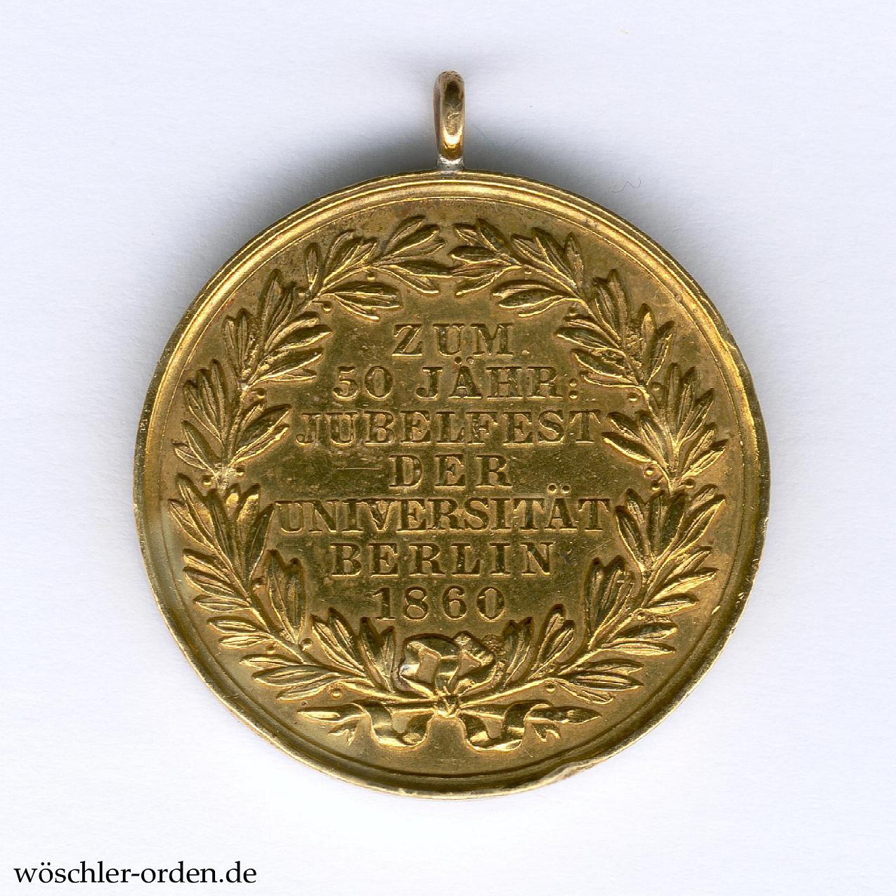 Königreich Preußen, tragbare Medaille auf das 50-jährige Jubelfest der Universität Berlin, verausgabt 1860.