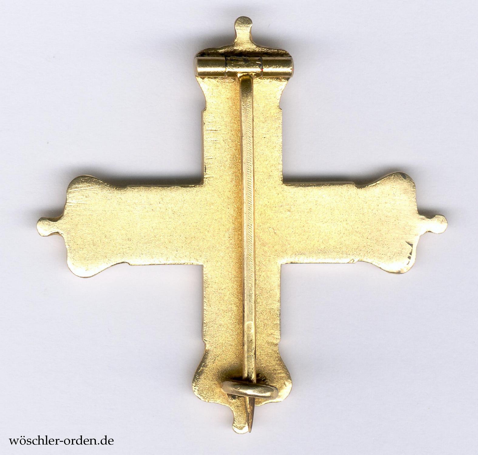 Verleihungsstück in probemäßiger Fertigung der Berliner Münze, Silber einteilig geprägt, teilweise vergoldet und emailliert. Rückseitig angelötet eine dünne, runde Tragenadel.