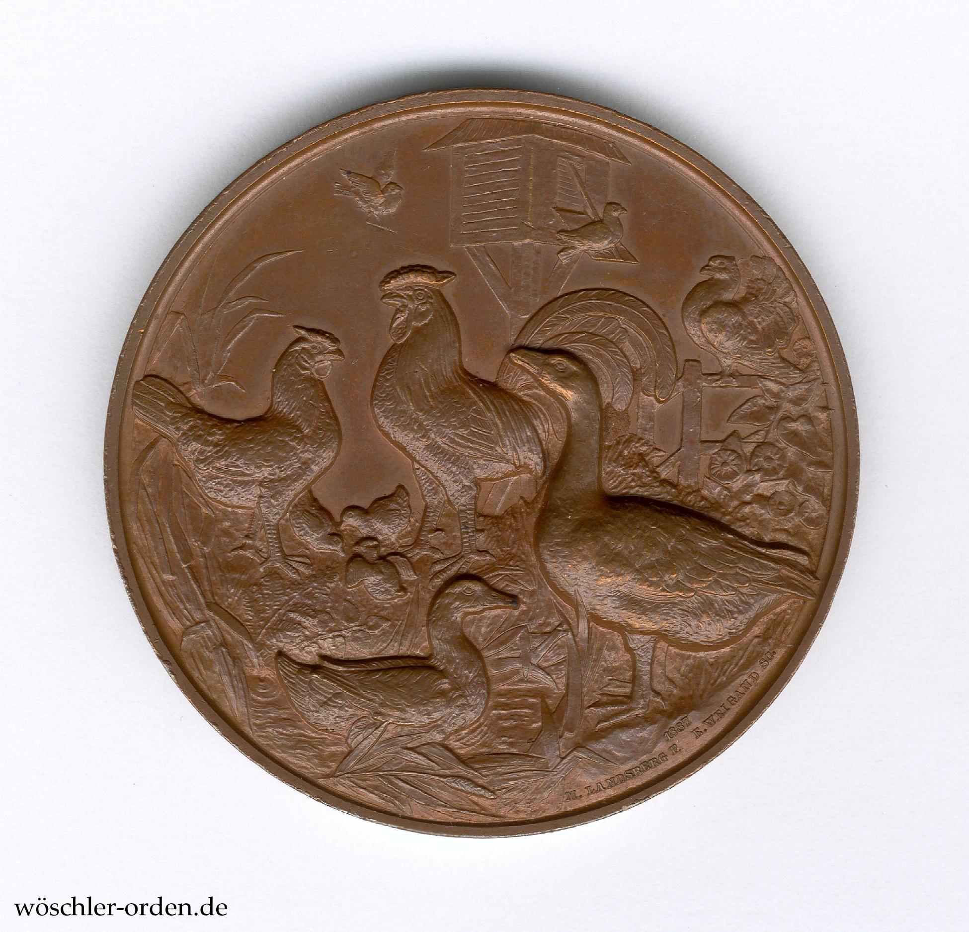 Königreich Preußen, Staatspreismedaille für Leistungen in der Geflügelzucht in Bronze, gestiftet 1887.