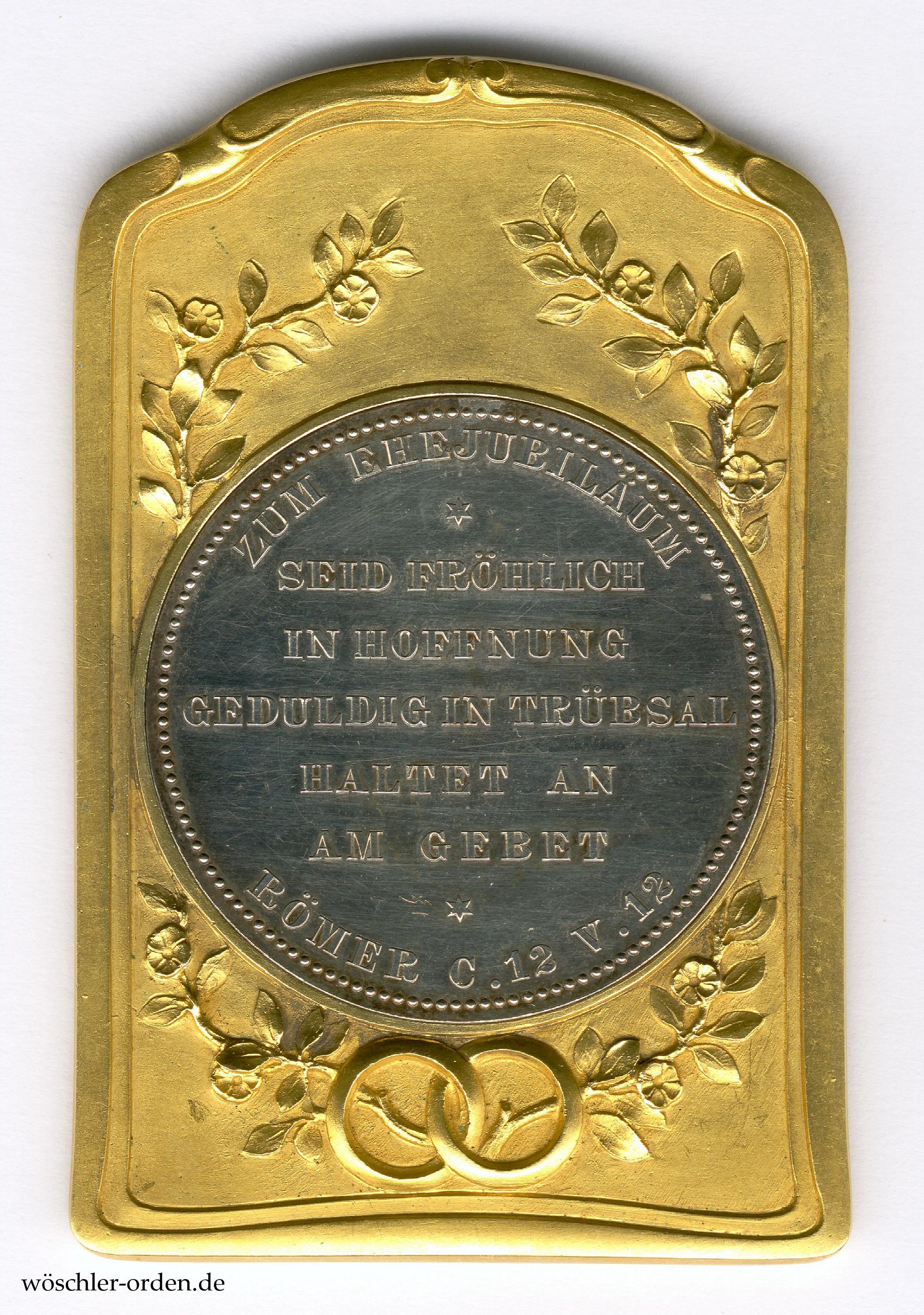 Literatur: Bannicke, Elke und Tewes, Lothar. Königlich preußische Staatsmedaillen für besondere Ehejubiläen. In: Beiträge zur Brandenburgisch/Preußischen Numismatik. Numismatisches Heft 18 (2010), S. 106–127.