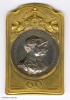 Gute Erhaltung mit nur leichten Kratzern vor allem auf der Rückseite der silbernen Medaille; der bronzene Rahmen unbeschädigt und lediglich stellenweise ganz geringfügig patiniert.