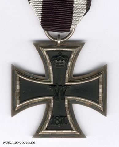 Das Eiserne Kreuz wurde durch König Wilhelm I. wenige Tage nach der Kriegserklärung Frankreichs an Preußen vom 19. Juli 1870 für den Deutsch-Französischen Krieg erneuert, der Erlass später auf den Tag der Kriegserklärung rückdatiert. In der zweiten Klasse erfolgten am schwarz-weißen und am weiß-schwarzen Band insgesamt über 40.000 Verleihungen.