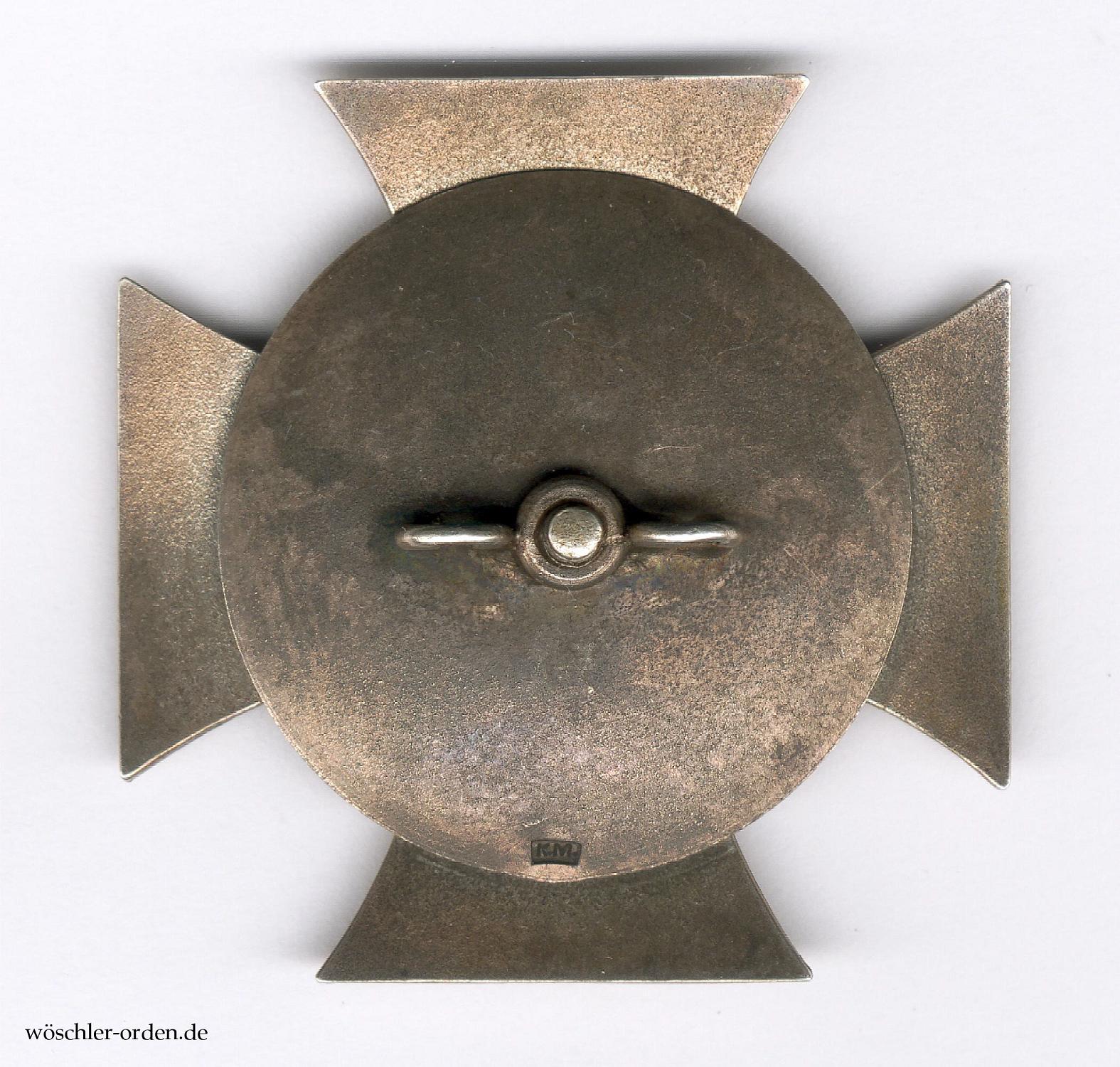 Wohl zeitgenössische, nichtprobemäßige Zweitfertigung in leicht gewölbter Ausführung mit geprägtem Eisenkern in Silberzarge. Rückseitig „K. M.“ herstellerpunzierte Schraubscheibe mit zwei kleinen, starr verlöteten Ringchen zum Greifen, diese jeweils „800“ punziert. Das Kreuz selbst unpunziert, jedoch zweifelsfrei ein Exemplar aus Fertigung der Königlichen Münze, Abteilung Orden, Stuttgart, die für ihre extravaganten EK-Varianten bekannt ist.