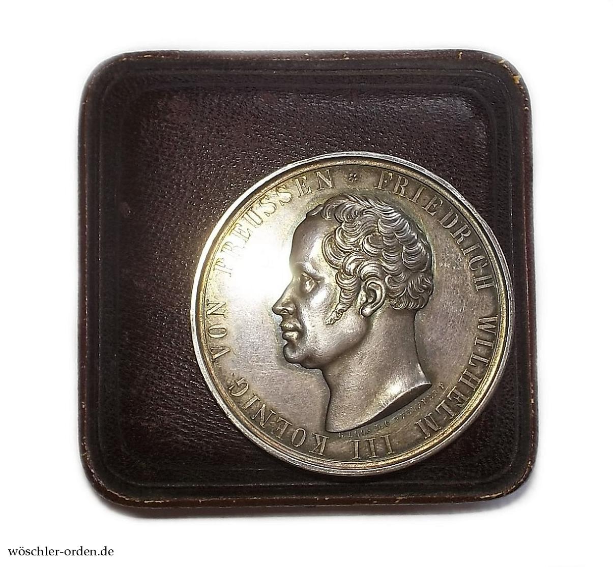 Exemplar der ersten, 1833 bis etwa 1870 gefertigten Ausgabe des königlichen Modells. Silber geprägt, mit der vorderseitigen Signatur „G. LOOS D. C. PFEUFFER F.“ des Medailleurs Christoph Carl Pfeuffer, die über den Halsabschnitt hinausgeht. Dieses Exemplar verfügt über keine Rand- oder sonstige Gravur. In der Loos’schen Medaillenmünze wurden etwa 1500 Exemplare dieser Ausgabe geprägt.