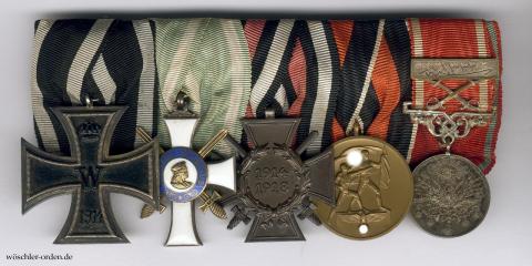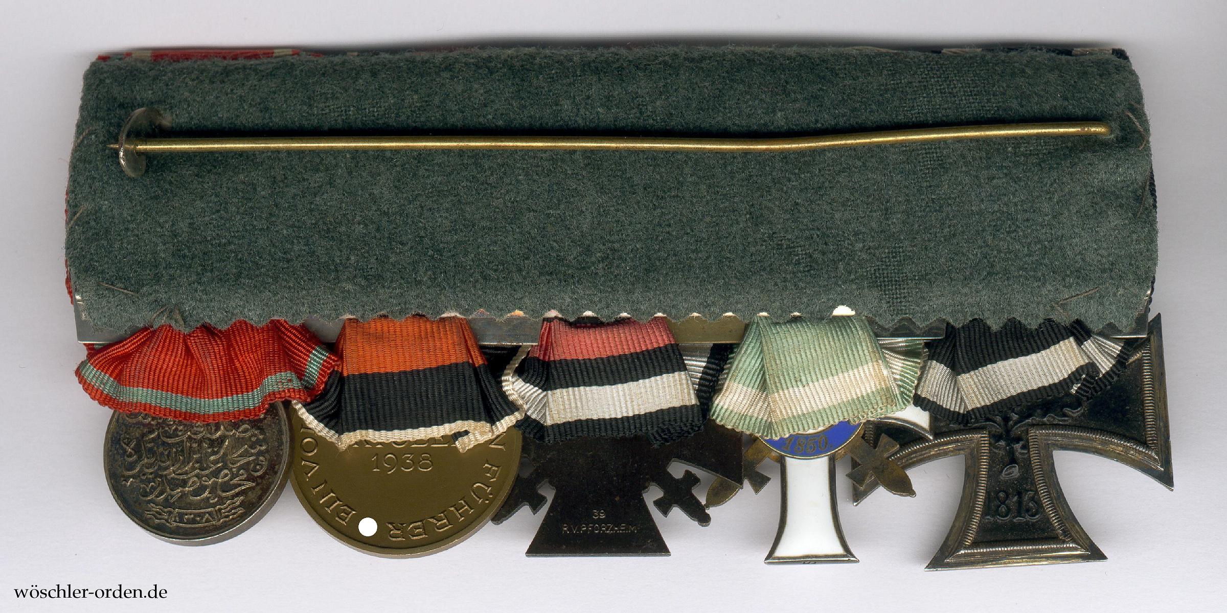 Deutsches Reich, 5-teilige Große Ordensschnalle eines vormals wohl Königlich Sächsischen Subalternoffiziers des Weltkrieges und mutmaßlichen Orientkämpfers, mit den folgenden Auszeichnungen:
