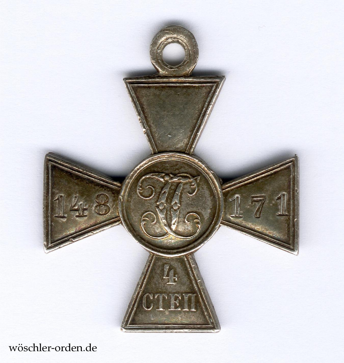 Kaisertum Russland, Kaiserlicher Orden des heiligen Großmärtyrers Georg des Siegreichen („Имперáторский Орденъ Святого Великомученика и Победоносца Георгия“), St.-Georgs-Soldatenkreuz, Kreuz IV. Klasse, verliehen 1856 bis 1917.