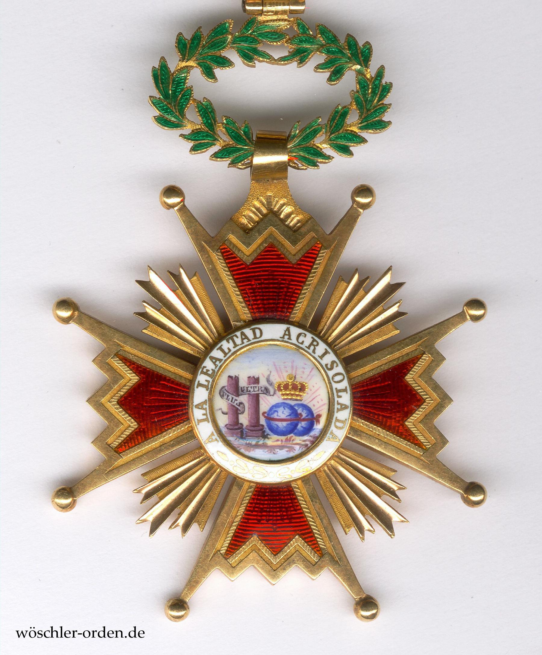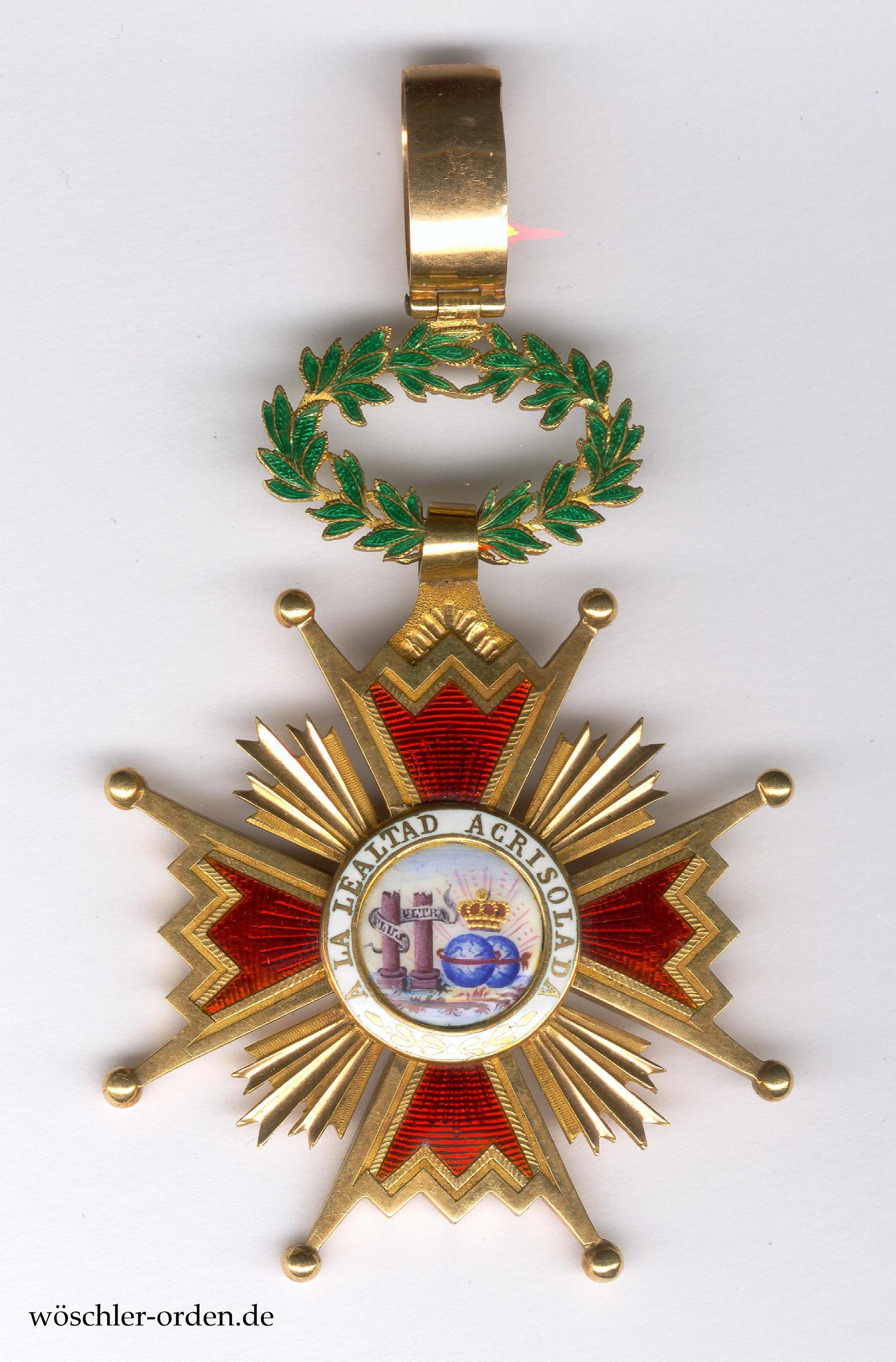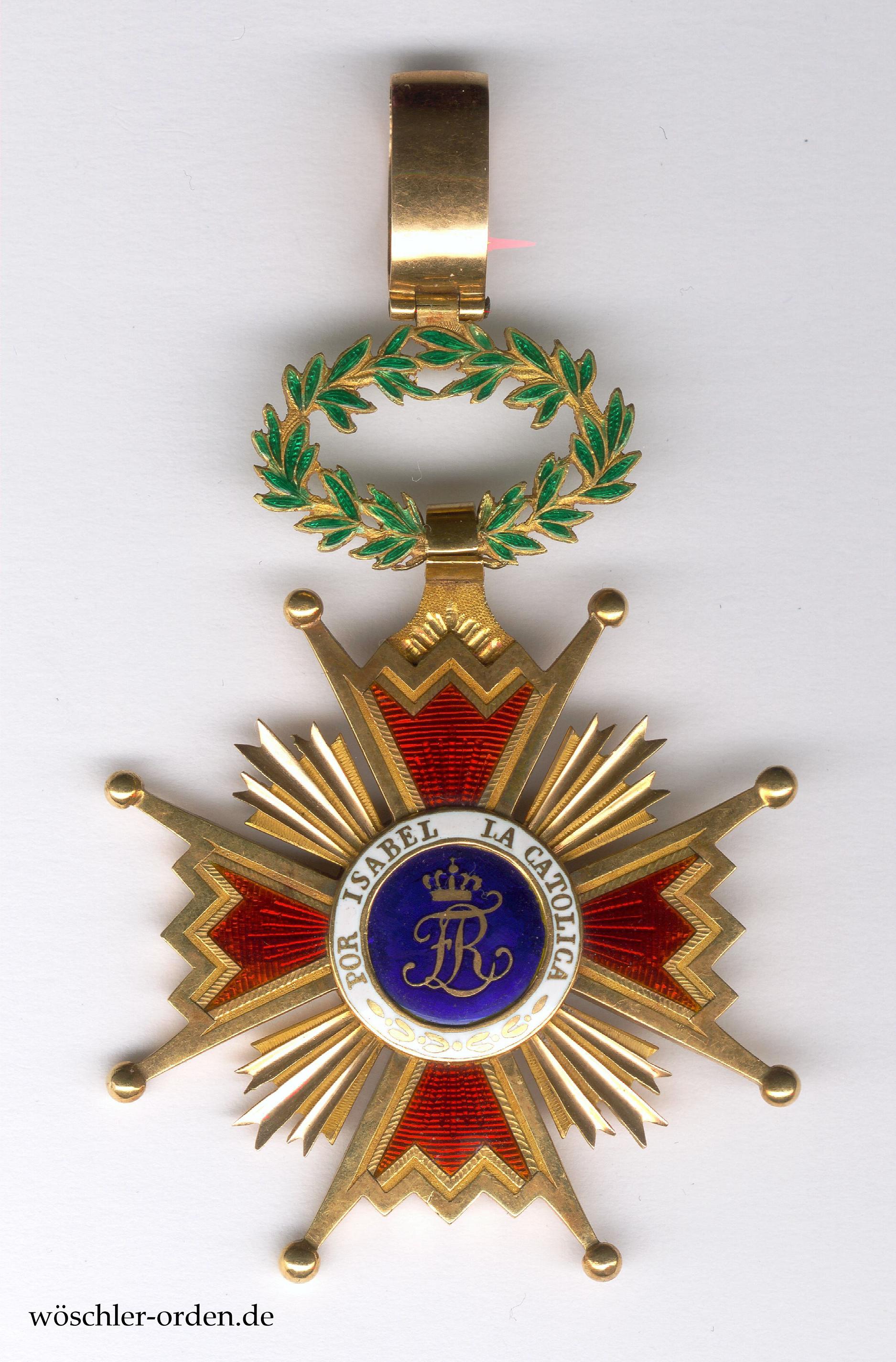 Königreich Spanien, Königlich Amerikanischer Orden Isabellas der Katholischen („Real Orden Americana de Isabel la Catolica“) bzw. Königlicher Orden Isabellas der Katholischen („Real Orden de Isabel la Catolica“), Kommandeurkreuz („Cruz de Comendador“), verliehen seit 1815.