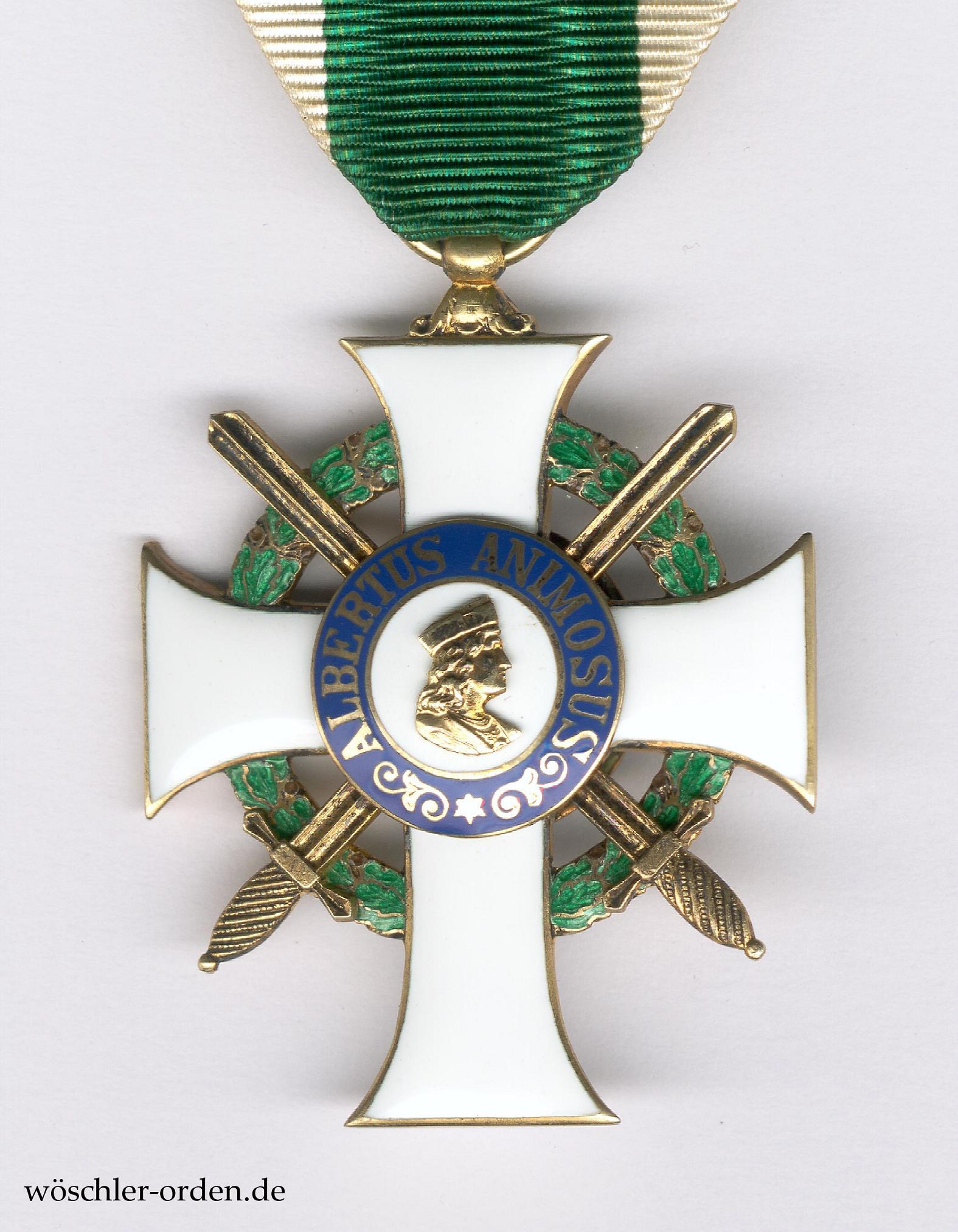 Der Königlich Sächsische Albrechtsorden wurde am 31. Dezember 1850 durch Friedrich August II. zum Andenken an den Stammvater der Albertinischen Linie des Hauses Sachsen, Herzog Albrecht den Beherzten, als allgemeiner Verdienstorden in ursprünglich fünf Klassen gestiftet. Nachdem Mitte der 1870er-Jahre festgestellt wurde, dass die Medaillons wegen einer Verwechslung den ernestinischen (!) Kurfürsten Friedrich III. darstellen, wurden die Insignien umgestaltet. Im Lauf der Jahrzehnte wurden mehrfach Klassen erweitert und umbenannt, außerdem konnten die Dekorationen ab 1866 mit Schwertern, ab 1870 auch – nach preußischem Vorbild – mit Schwertern am Ring verliehen werden. Die Verleihungen wurden mit dem Ende der Monarchie im November 1918 eingestellt. Für das Ritterkreuz I. Klasse mit Schwertern weist Oswald 3779 Verleihungen nach, zum allergrößten Teil für den Weltkrieg, davon 2524 an Inländer sowie 1255 an Ausländer, also Nicht-Sachsen. Diese Zahlen scheinen jedoch zumindest nicht ganz vollständig zu sein.