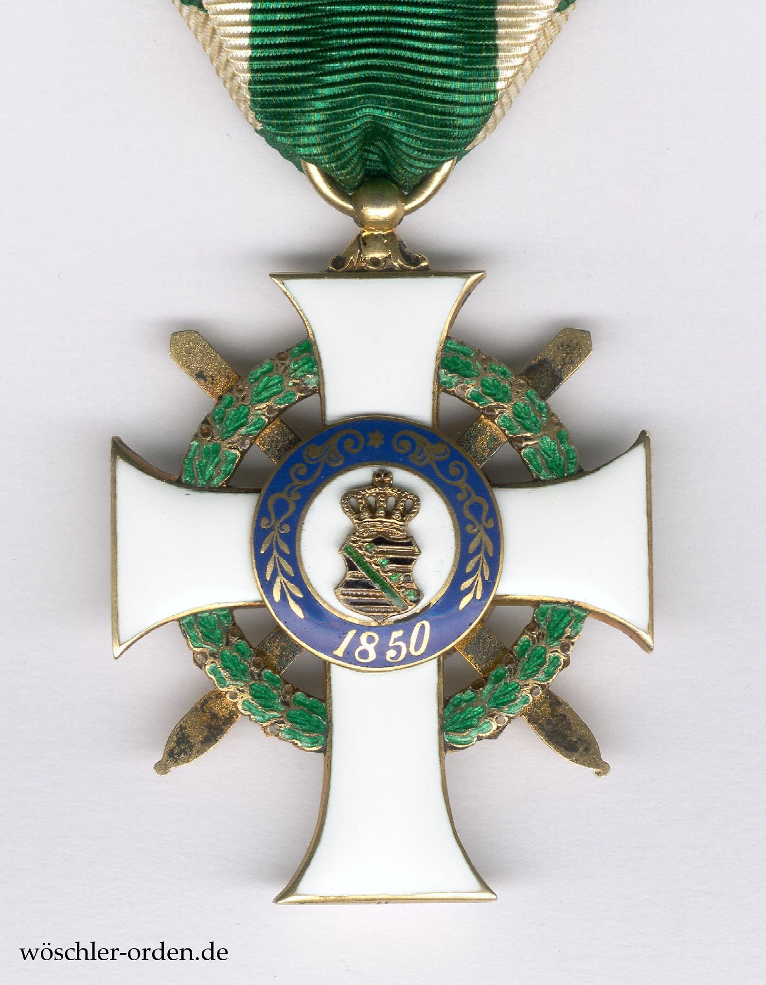 Königreich Sachsen, Königlich Sächsischer Albrechtsorden, Ritterkreuz I. Klasse mit Schwertern, verliehen 1851 bis 1918, bzw. bis 1876 als „Ritterkreuz mit Schwertern“.