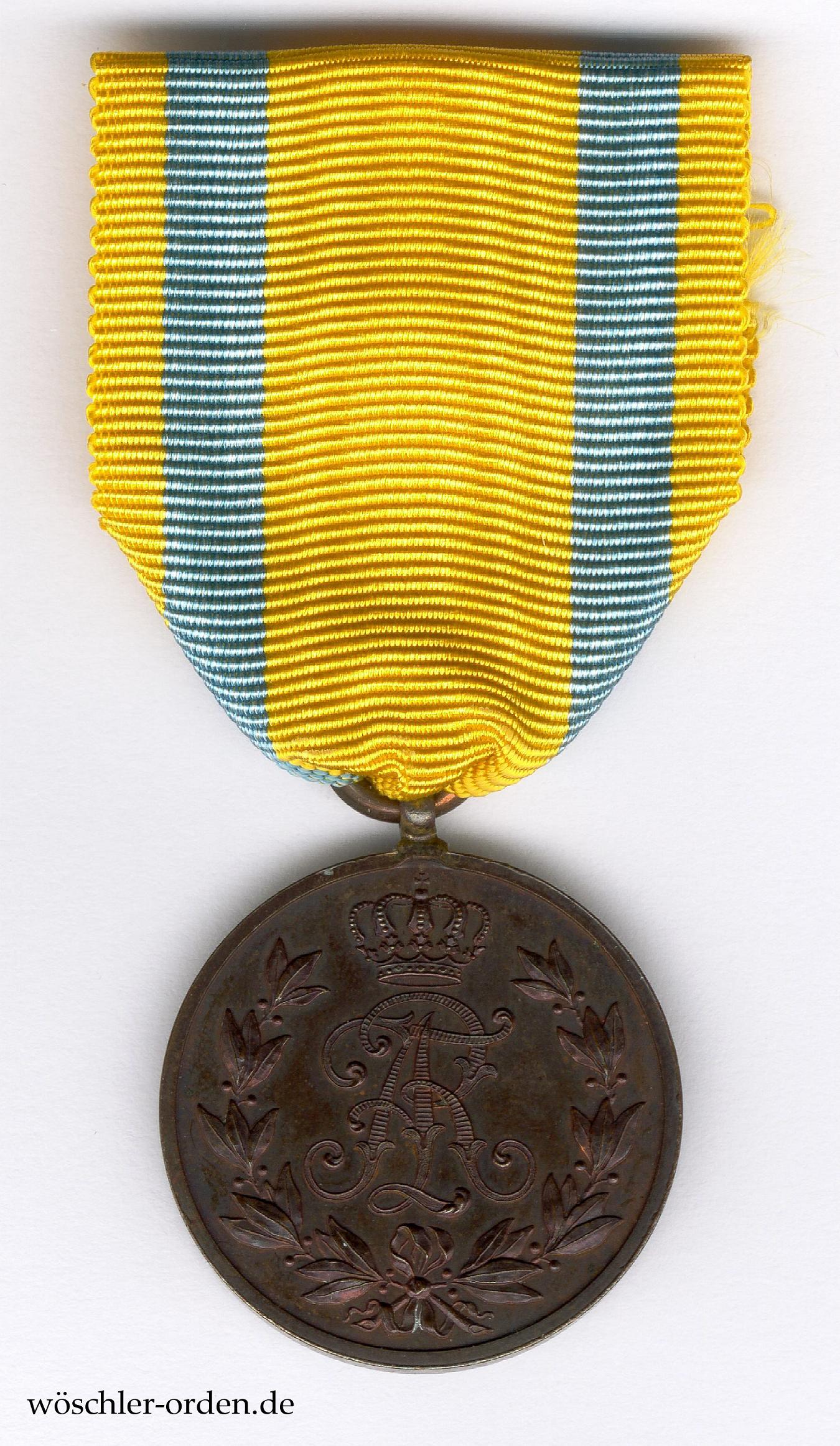 Verliehenes Original aus Fertigung der Königlichen Münze Muldenhütten. Bronze geprägt und patiniert, an angelöteter stabiler Ringöse mit geschlossenem Bandring.