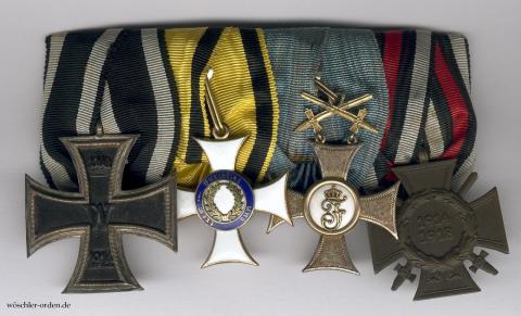 Deutsches Reich, 4-teilige Große Ordensschnalle eines höchstdekorierten vormals Königlich Württembergischen Subalternoffiziers des Weltkrieges, mit folgenden Auszeichnungen: