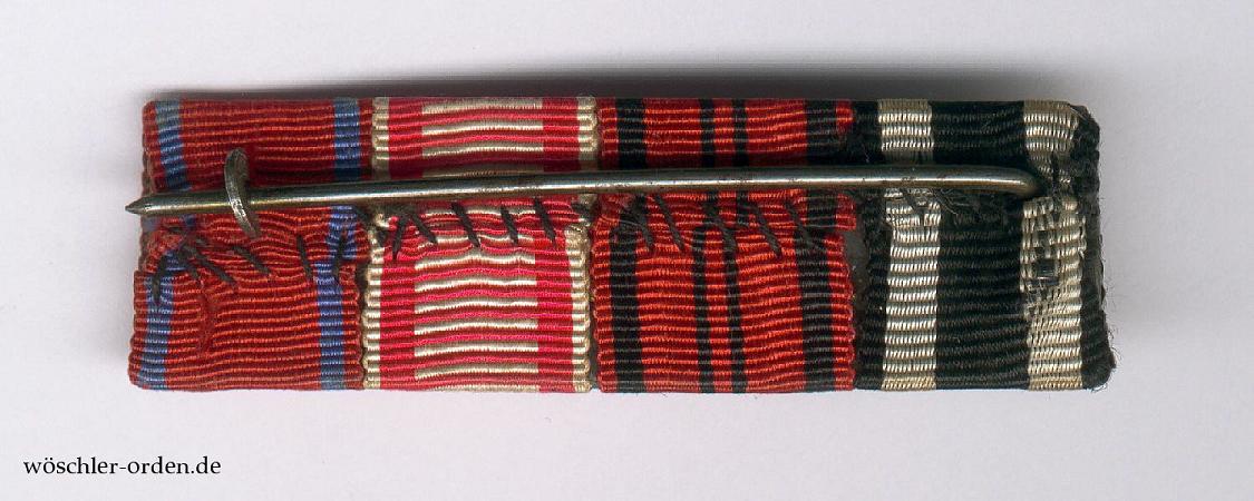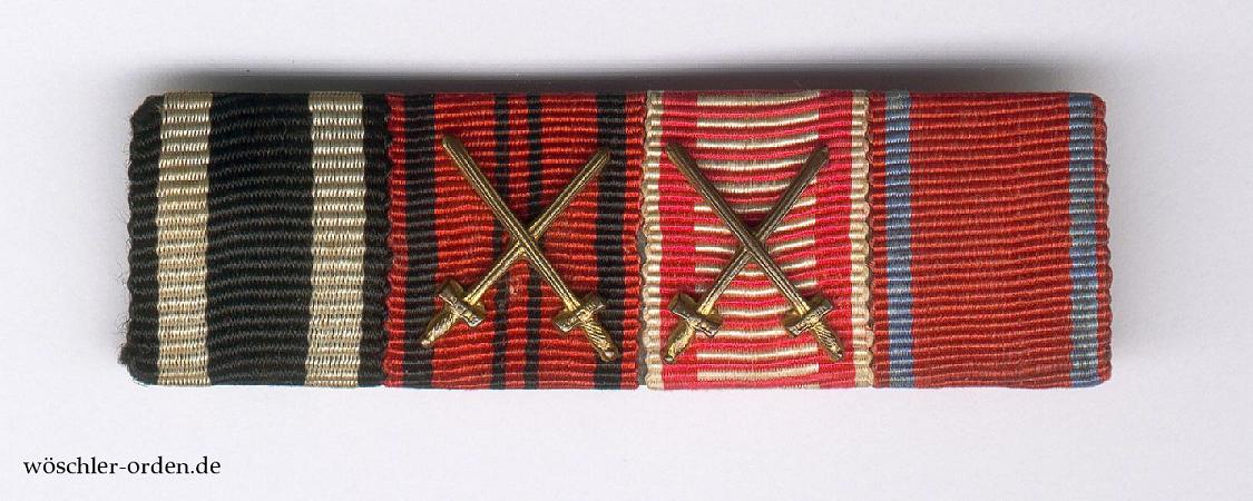 Dazu eine zugehörige, jedoch 4-teilige Kleine Ordensschnalle („Feldspange“) zusätzlich mit dem Band einer württembergischen Dienstauszeichnung bzw. eines Dienstehrenzeichens.