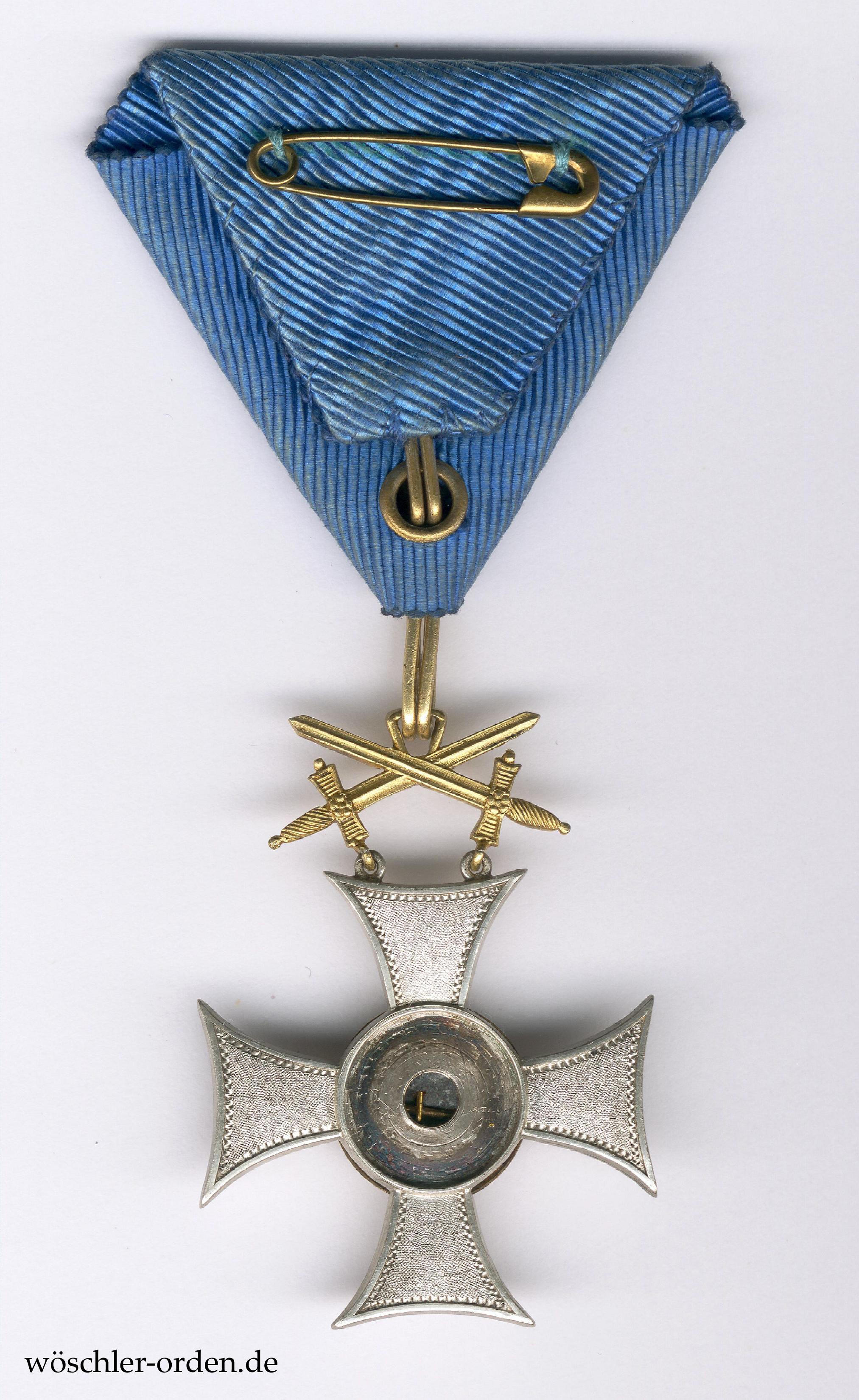 Exemplar aus der Fertigung der Königlichen Münze, Stuttgart, aus der Zeit des Weltkrieges. Silber massiv geprägt, die Medaillons vergoldet und emailliert, ebenso die beweglich mittels Ringchen angebrachten Schwerter und der längliche Bandring vergoldet. Die Stuttgarter Münze lieferte von 1915 bis 1918 insgesamt 4938 Exemplare dieser Klasse.
