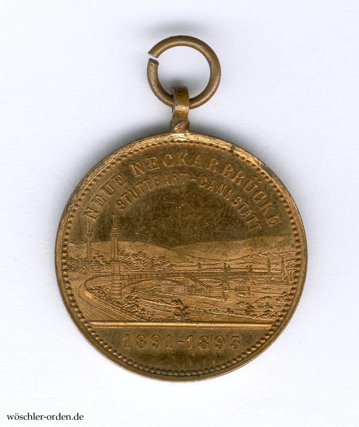 Königreich Württemberg, tragbare Medaille auf die Einweihung der neuen Neckarbrücke in Stuttgart-(Bad) Cannstatt, von 1893.